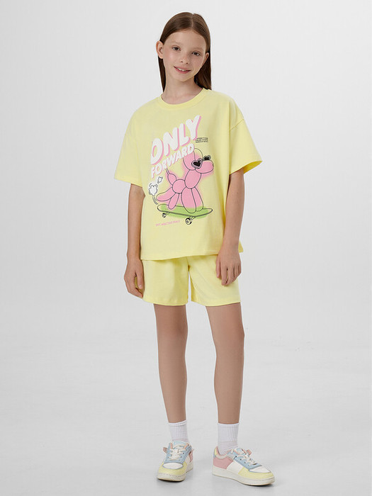 Комплект для девочек состоит из футболки и шорт.