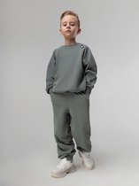 Футболка свободного силуэта. Перед и спинка цельнокроеные. Длина до середины бедра. Рукав втачной, короткий. Горловина круглой формы, обтачка из рибаны. Низ изделия и рукваов обработан на 2-х игольной плоскошовной машине швом в подгибку.