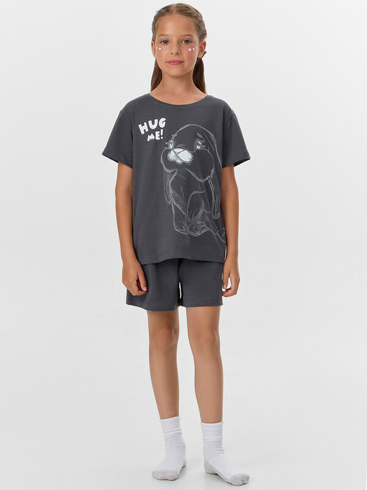 Комплект для девочки, состоит из футболки с короткими рукавами и шорт из натурального хлопка. Подходит для сна и отдыха. Материал очень приятный к телу, хорошо пропускает воздух, что позволяет чувствовать себя комфортно даже в жаркую погоду. Идеальный выбор детской одежды для дома. Стильно, красиво, комфортно. Футболка декорирована интересным принтом, шортики однотонные. Широкий размерный ряд, базовые и яркие расцветки, модели с принтами, рисунками и печатями. Купите детскую пижаму для девочки от Mark Formelle, порадуйте ребенка красивым и стильным подарком!