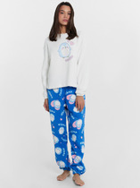 Комплект состоит из блузки и брюк, блузка на базе 592368. Силуэт блузки прямой и свободный, рукава длинные втачные, линия плеча немного спущена. Блуза с центральной застежкой на пуговицы, воротник стояче-отложной.Низ изделия и низ рукавов застрочен швом в подгибку.