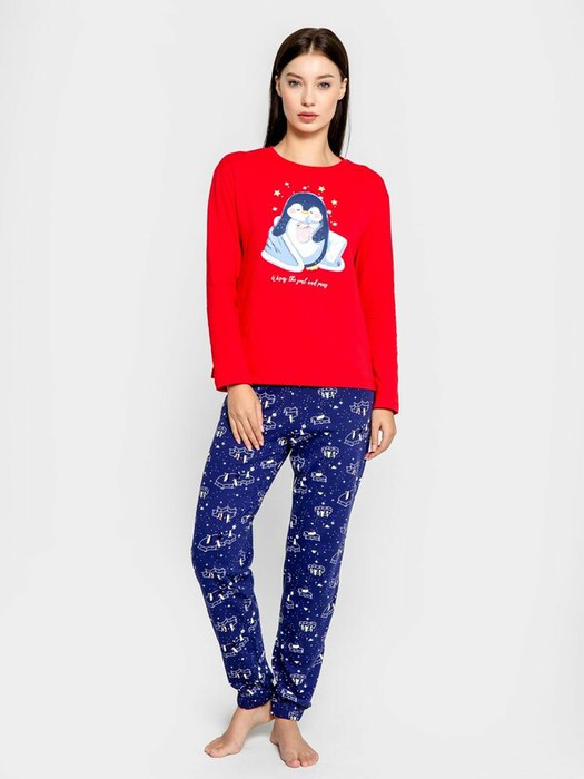Совместные покупки Уфа Женская одежда Пижамы, халаты — Mark Formelle КОМПЛЕКТ ЖЕНСКИЙ (ДЖЕМПЕР, БРЮКИ) 592510 592510 красный +пингвины