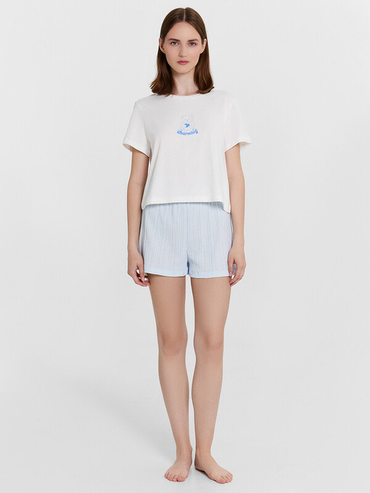 Совместные покупки Уфа Женская одежда Пижамы, халаты — Mark Formelle КОМПЛЕКТ ЖЕНСКИЙ (ДЖЕМПЕР, ШОРТЫ) 592495 592495 белый +голубое неб