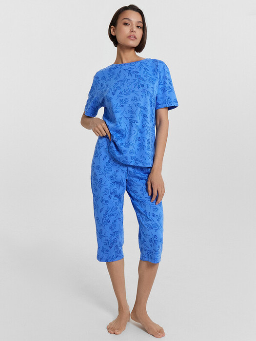 Совместные покупки Уфа Женская одежда Пижамы, халаты — Mark Formelle КОМПЛЕКТ ЖЕНСКИЙ (ФУТБОЛКА, БРИДЖИ) 592370 592370 веточки на лазур
