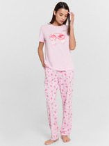 Бриджи с эластичным поясом на широкой резинке мягко фиксируются на талии, не создавая давления, а прямой крой обеспечивает свободу движений. Если вы ищете пижаму, которая сочетает качественные ткани, продуманный крой и универсальность, этот комплект станет прекрасным выбором.