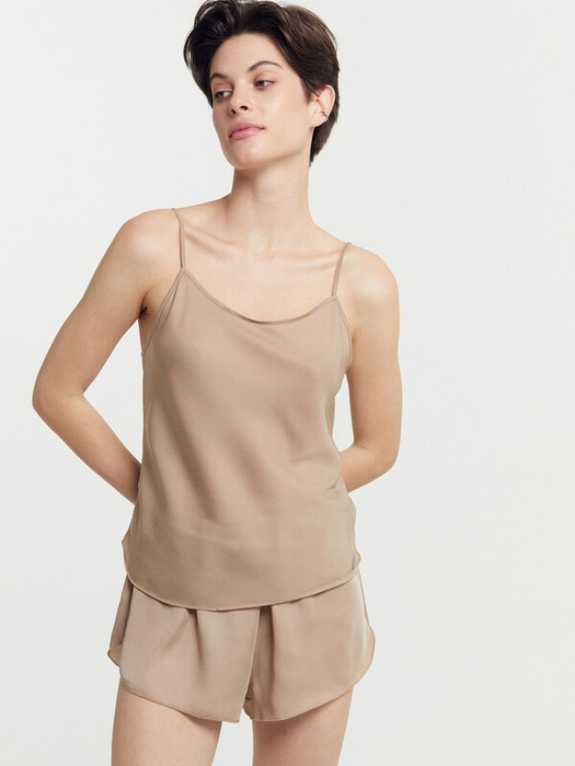 Комплект состоит из топа и шорт. Топ полуприлегающего силуэта. Перед и спинка цельнокроенные. Горловина и проймы окантованы бейкой переходящей в бретель с регулировкой . Низ топа обработан на микрооверлоке.