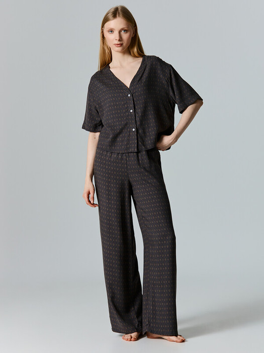 Нежная женская пижама выглядит очень элегантно и комфортно. Жакет свободного силуэта с короткими рукавами и застежкой на пуговицах создаёт легкий и расслабленный образ. А легкие брюки с эластичным поясом обеспечивают дополнительный комфорт и свободу движений. Изделие выполнено из нежнейшей и приятной к телу вискозы, которая дарит ощущение мягкости и комфорта на протяжении всего дня или ночи. Этот комплект идеален для тех, кто ценит качество и утонченность в домашней одежде.