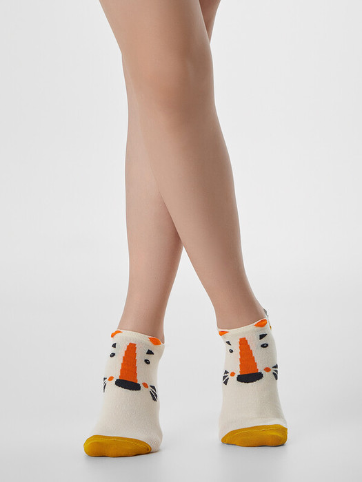 рис.1957 Детский носок гладкий суперкороткий с рисунком в виде тигриной мордочки и 3D рисунком.