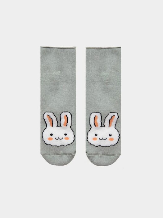 рис.2476 Детский, плюшевый носок с отворотом и рисунком в виде зайчика