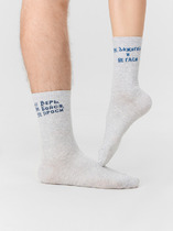 Высокие мужские носки с надписью "Не послать ли нам гонца...." – оригинальный и стильный элемент гардероба. Изготовленные из хлопка, они обеспечивают комфорт и мягкость при носке. Яркая надпись добавляет нотку юмора и индивидуальности, делая эти носки отличным дополнением к повседневным образам.