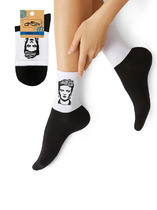 рис.3034 Мужской носок классический, высокий, с рисунком в виде надписи "СТАТУС ЖЕНАТ".