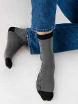 рис.3094 Укороченные мужские носки с рисунком в виде смайлика на бортике.