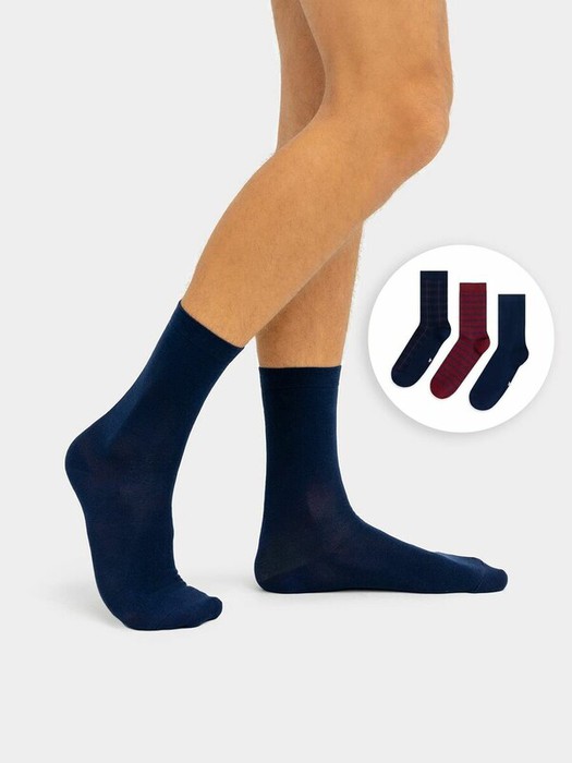 рис.1782 Мультипак из трех пар классических высоких мужских носков с узким бортом и рисунками в виде клетки и полоски.