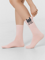 рис.2666 Женский носок с  высоким плотным бортом и рисунком в виде котика с надписью.
