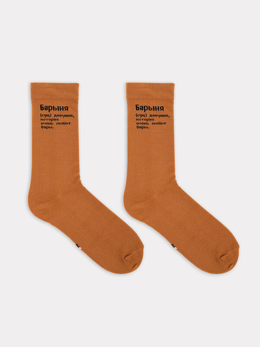 рис.2544 Женский, однотонный носок с тонким гладким бортом и рисунком в виде надписи "Барыня..."