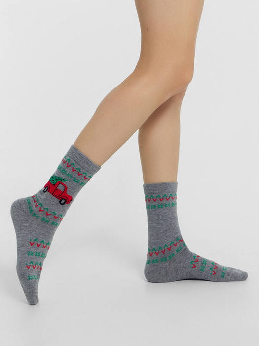 рис.2959 Женские классические носки из смешанной пряжи с рисунком в виде орнамента с машинкой.
