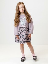 Платье свободного силуэта. Горловина круглой формы обработана обтачкой из рибаны. Шов притачивания рибаны распошит. Рукава длинные, втачные, внизу на сборке. Линия плеча спущена. По низу рукавов притачные манжеты из рибаны. Центральный шов по спинке с разрезом снизу. Низ изделия обработан на 2-х игольной плоскошовной машине швом в подгибку. Длина платья выше колена.
