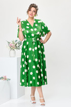Низ платья расширяется к низу. Длина платья ниже колена.