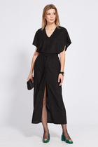 Перед и спинка цельные. Диагональные проймы окантованы бейкой из основного полотна. Окантовка пройм переходит в бретели.