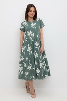 Платье женское полуприлегающего силуэта из ткани.