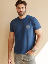 Vilatte Футболка из премиального хлопка с авторским принтом U49.045 т.синий_adve