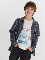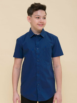 Блузка для девочек. свободного силуэта из ткани.  По переду обработана застежка на пуговицы d=10mm и петли. Рукава короткие, втачные, слегка спущены. Нижние срезы изделия и рукавов обработаны швом в подгибку.