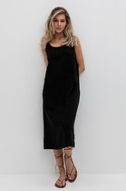 Сарафан расширяется к низу, длина сарафана миди.