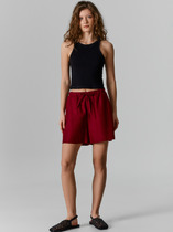 Шорты с посадкой на талии свободного силуэта, удлиненные. Пояс цельнокроеный с резиной внутри 30RV. Низ изделия застрочен швом в подгибку.