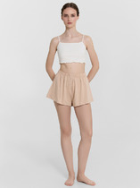 Шорты прямые, короткие. Посадка средняя. Пояс цельнокроеный с эластичной тесьмой внутри (вн. 40мм 40RV). В боковых швах обработаны карманы. Подкладка карман из основного полотна. Нижние срезы шорт с «сырым срезом».