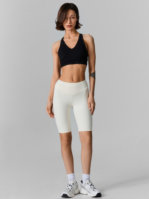 Шорты женские прилегающего силуэта. Пояс отрезной из основного полотна, с эластичной тесьмой внутри 10RV. По попе кокетка. Длина чуть выше колена.
