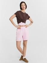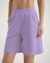Мини-шорты свободного силуэта из легкого трикотажного футера. Высокая посадка на талии, эластичная тесьма в поясе, регулировочный шнурок-завязка и удобные боковые карманы – комфортный минимализм!