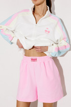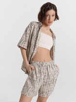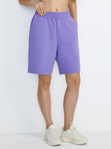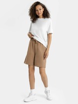 Шорты свободного силуэта, короткие.  Пояс цельнокроеный, с втаченной эластичной тесьмой 40RV. Низ шорт обработан швом в подгибку.