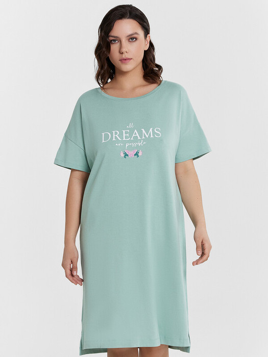 Ночная сорочка из великолепного хлопкового полотна. Силуэт свободный, длина до колена. Короткие рукава, круглый вырез горловины, разрезы по бокам. Привлекательная и уютная модель