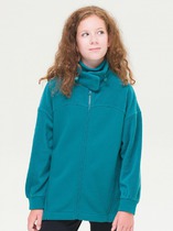 Жакет для мальчиков прямого силуэта с капюшоном. Капюшон на подкладке из основного полотна. Шов втачивания капюшона закрыт х/б тесьмой. Рукава втачные, линия плеча спущена. Притачные манжеты по низу рукавов и притачной пояс из рибаны. По переду застежка молния, карман кенгуру.
