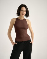 Топ женский прилегающего силуэта из трикотажного полотна рибана. Горловина круглой формы.