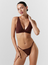 Передняя и задняя детали выполнены из микрофибры. Ластовица из кулирной глади отлетная по переднему срезу. По талии жилка тканая настрочена на п/ш с узким межигольным расстоянием.