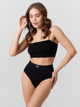 Передняя и задняя детали выполнены из микрофибры. Ластовица из кулирной глади отлетная по переднему срезу. По талии жилка тканая настрочена на п/ш с узким межигольным расстоянием.