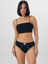 Трусы женские шорты со средней посадкой из рибаны. Передняя деталь цельная. Задняя деталь со средним швом, по ножкам узкое кружево шириной. Нижняя ластовица отлетная по переднему срезу, выполнена из кулирной глади. По талии тесьма эл с зубом настрочена на 4-укольном зигзаге.. Ножки обработаны на плоскошовной машине без эластичной тесьмы.