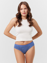 Трусы женские, силуэт слип, из трикотажного кулирного полотна, со средней посадкой, с протяжками по бочкам.  Передняя и задняя детали цельные. Подкладка ластовицы из кулирной глади отлетная по переднему срезу. На бочках отверстия.