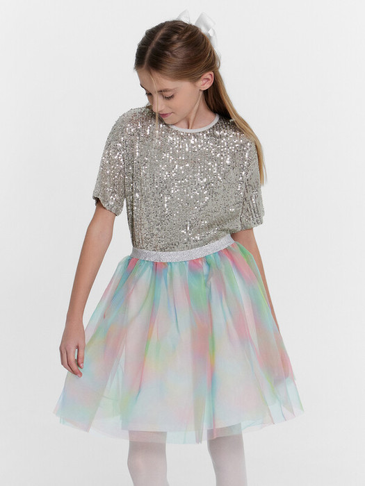 Эта пышная многослойная юбка для девочек - идеальный выбор для нарядных образов. Модель длиной выше колена создаёт эффектный силуэт. Верхний слой юбки выполнен из сетки, украшенной пайетками, что придает ей особый блеск и шарм. Нижний слой из нежной хлопковой кулирки обеспечивает комфорт и мягкость во время носки. Эластичный жаккардовый пояс добавляет элегантности и завершенности образу. Эта юбка станет прекрасным дополнением к гардеробу любой маленькой модницы, позволяя создавать изысканные и праздничные наряды. Рекомендуем!