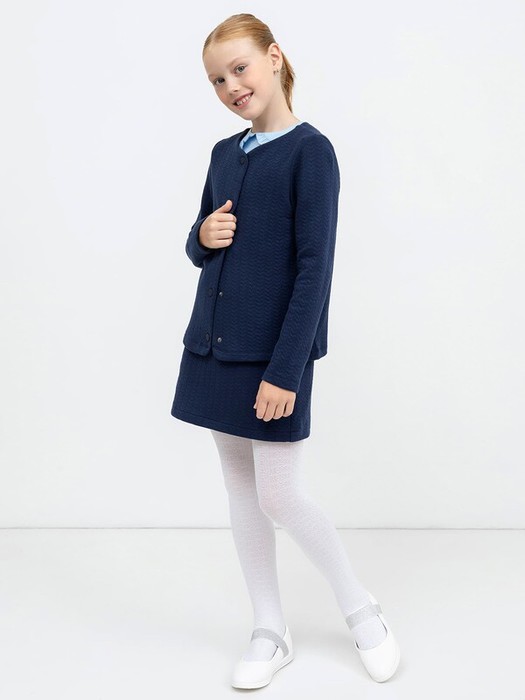 Жакет прямого силуэта из капитона. Спинка без швов и рельефов, перед с центральной застежкой на кнопки. Края бортов закруглены.Горловина круглой формы. Рукава длинные. Есть боковые карманы. Практичный выбор!
