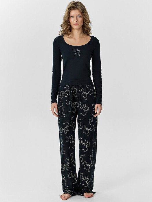 Брюки с посадкой на талии свободного силуэта. Пояс цельнокроеный с резиной внутри 20RV. По центру пояса пробиты петли, протянута бейка из основного полотна. На передних деталях карманы «хулиганы». Низ изделия застрочен швом в подгибку.