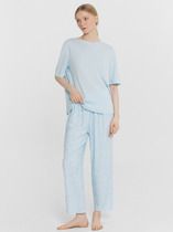 Джемпер прямого кроя с круглой горловиной и короткими рукавами не сковывает движения, а аккуратная обработка швов гарантирует комфорт. Брюки с высокой посадкой и широким эластичным поясом мягко фиксируются на талии, а практичные карманы-«хулиганы» добавляют функциональности.