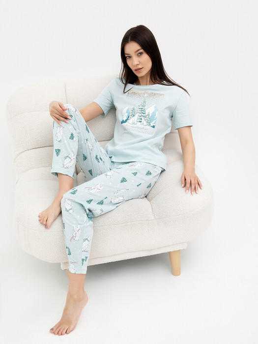 Совместные покупки Уфа Женская одежда Пижамы, халаты — Mark FormelleКОМПЛЕКТ ЖЕНСКИЙ (ФУТБОЛКА, БРЮКИ) 592369 592369 мятное суфле +медв