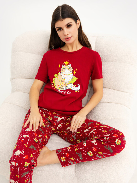 Совместные покупки Уфа Женская одежда Пижамы, халаты — Mark FormelleКОМПЛЕКТ ЖЕНСКИЙ (ФУТБОЛКА, БРЮКИ) 592369 592369 вишневый +коты на