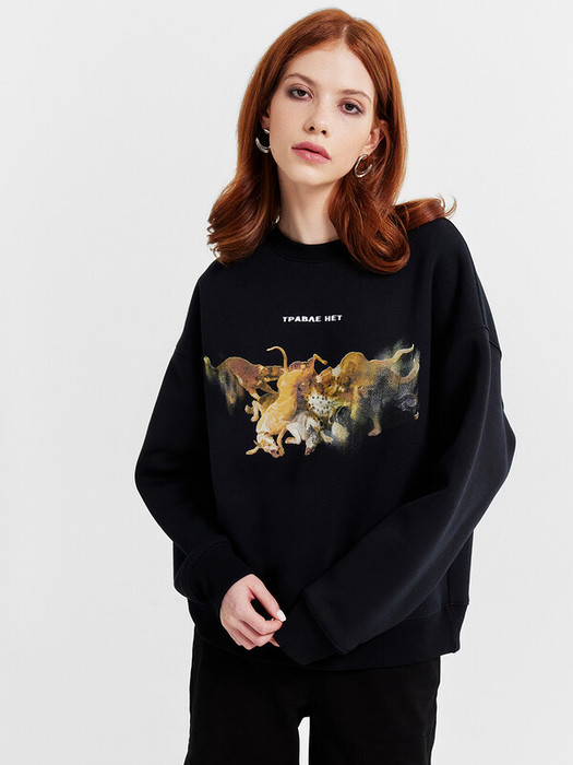 Совместные покупки Уфа Женская одежда Джемперы, свитеры, водолазки — Mark FormelleСВИТШОТ ЖЕНСКИЙ 122813/1 122813/1 черный +печать7 18114