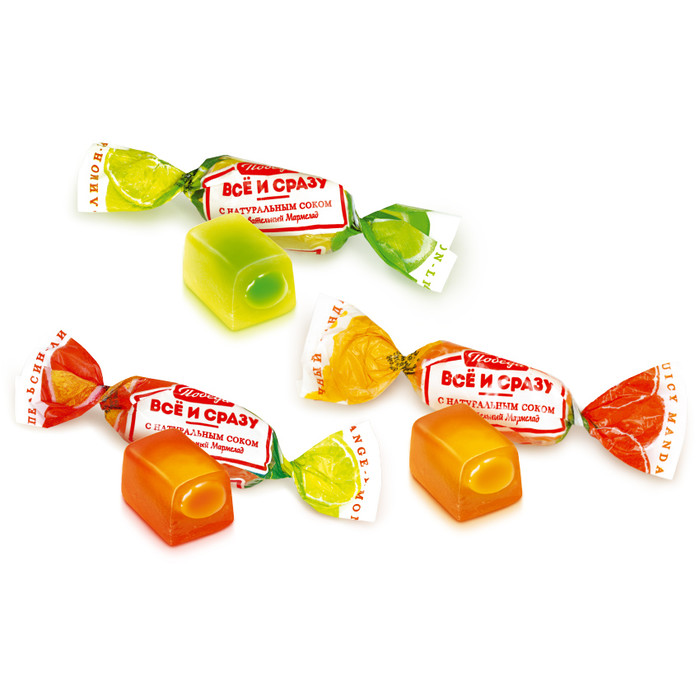 Жевательный мармелад ещё никогда не был таким заманчивым. Вкусы тропических вечеров – апельсин-лимон, лимон-лайм и сочный мандарин – раскрываются начинками из натуральных фруктовых пюре и соков. Эта серия понравится любителям ярких впечатлений.