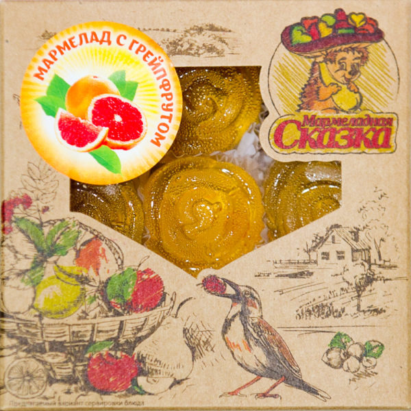 Состав: сахар-песок, патока, грейпфрут, агент желирующий – пектин, регулятор кислотнойти – кислота лимонная, глазирователь – пчелиный воск