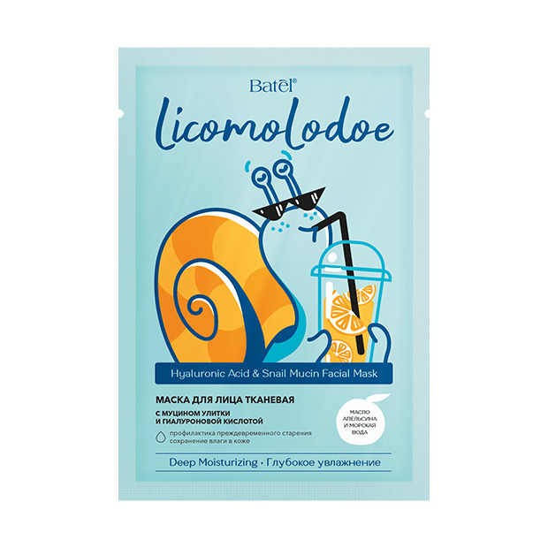 Маска для лица тканевая с муцином улитки и гиалуроновой кислотой
