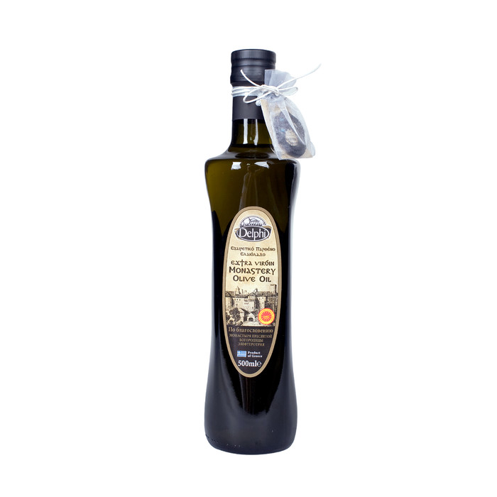 Мы смиренные рабы Божии, продолжатели многовековой традиции, которую переняли от келейных старцев, ведущих аскетический образ жизни, совершали свое послушание, возделывая вековые оливковые деревья в Св. Монастыре Богородицы Элефтеротрии. Мы предлагаем Вам с компанией «Дельфи» оливковое масло из плодов, выращенных на плодородных монастырских угодьях, бережно нами собранных и переработанных для употребления в пищу на радость, и в качестве дара Спасителю, милостивому Христу, для возжигания лампад». Сотрудничество осуществляется по благословению монахов Св. Монастыря Богородицы Элефтеротрия.