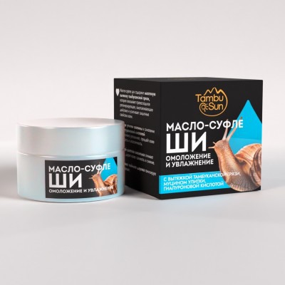 Масло-суфле ши имеет натуральный состав и нежную текстуру, содержит целебную вытяжку тамбуканской грязи, богатую полезными минералами, с общеукрепляющим и восстанавливающим действием.